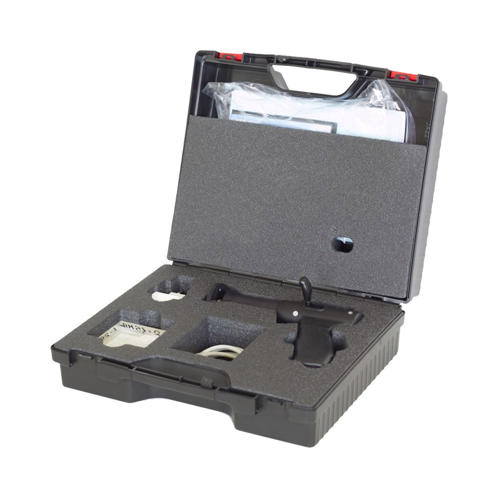 - Удобство использования. Настройка прибора и выбор режимов производятся через пользовательское меню, чем обеспечивается простота и наглядность работы со склерометром. Пистолетная форма преобразователя позволяет комфортно, без лишних усилий удерживать его и выполнять измерения одной рукой, снимая одновременно получаемые данные с цифрового дисплея электронного блока;